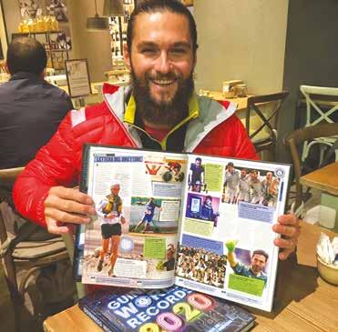 A sinsistra, Michele Graglia mentre mostra il libro dei Guinnes World Records 2020 dove è presente
