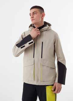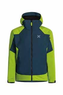 staccabile tramite zip nella parte posteriore, mentre il connector è nascosto nella parte frontale del collo. Dotato di zip frontale e di tasche impermeabili con tiretto personalizzato, il capo d’abbigliamento offre molte opzioni grazie alle tasche poste sul petto e al taschino porta skipass. Le altre caratteristiche sono il logo applicato sul petto, le aerazioni laterali, i polsini interni con foro ergonomico per il pollice e la fodera personalizzata per schiena e cappuccio. L’inserto schiena è in rete per facilitare la traspirazione e aumentare l’elasticità nei movimenti. Tasche interne: una tasca porta cellulare e una in rete porta maschera con pulisci maschera staccabile. Stampa Technology Box all’interno del capo.
