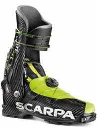 La versione aggiornata del modello F1 mantiene le già note caratteristiche di rigidità e mobilità dello scarpone. Dotato di una scarpetta thermoformabile Intuition e di riflettore Recco. Obiettivo di SCARPA con i nuovi prodotti è anche quello di garantire semplicità di utilizzo. È questo il caso del Shell Extension, il nuovo lembo incollato allo scafo che permette di posizionare in modo preciso e sicuro la linguetta dello scarpone, ma anche del Boa Fit System che offre una chiusura e un fit personalizzati, per il massimo comfort senza punti di pressione. Dotato di Carbon Core Evo, un inserto in carbonio sovra-iniettato che garantisce un’elevata rigidità torsionale e longitudinale. Questo dettaglio permette inoltre una più diretta trasmissione degli impulsi allo sci, e una conseguente precisione in sciata. Grazie al sistema di ritorno automatico, il passaggio da ski a walk avviene in maniera semplice e veloce. Il sistema è inoltre dotato di tecnologia Friction Free. Grazie a X-CAGE EVO è possibile avere una struttura rigida senza aumentare il peso, riducendo al minimo la torsione lungo l’asse longitudinale.