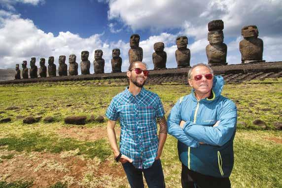 Cesare Graglia davanti ai maestosi Moai di Tongariki
