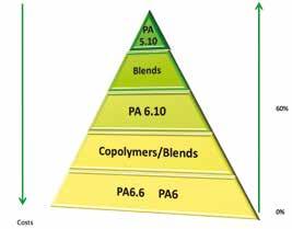 Questi prodotti consentono dunque di ridurre notevolmente l’uso di risorse non rinnovabili rispetto ad altre poliammidi interamente basate su intermedi petrolchimici. Inoltre bisogna precisare che i biopolimeri derivano da risorse rinnovabili non concorrenziali con la produzione alimentare: la coltivazione delle piante di olio di ricino, diffusa soprattutto in India e Cina, avviene su terreni semiaridi e non è quindi in concorrenza con le colture alimentari.