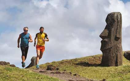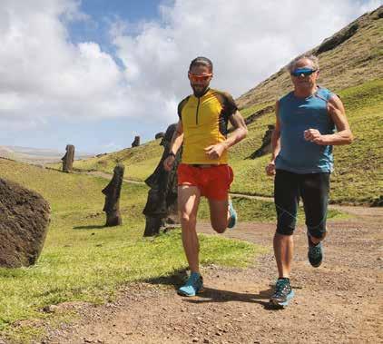 DI CORSA TRA LE STATUE - V ista la bellezza dei posti e il poco traffico di queste strade, correre sull’isola è una tentazione a cui è difficile resistere, e i runner, si sa, hanno le scarpette sempre pronte. Michele ha le gambe sfatte dai 925 km dell’attraversamento dell’Atacama e quindi - nonostante la sua esuberanzaha un passo logicamente molto ingolfato e lento. Ed è proprio