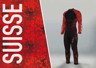 Una tuta da gara per lo sci di fondo aerodinamica ingegnerizzata con zone mirate di costruzione a doppio strato. Il primo strato ha una struttura a “palla da golf” per generare una maggiore turbolenza dell’aria per ridurre la resistenza aerodinamica. Il secondo strato fornisce l’applicazione grafica personalizzata migliorando al contempo le proprietà aerodinamiche del primo strato per offrire la tuta da sci nordico più aerodinamica oggi sul mercato.