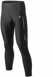 Pantaloni in tessuto stretch poliestere ed elastane. Il capo è leggero e assicura asciugatura rapida. Presenta vita elasticizzata con coulisse, tasca posteriore con zip, cerniere alla caviglia, cuciture ”Flat lock” per il massimo comfort, elastico siliconato su orlo e dettagli riflettenti per migliorare la visibilità.