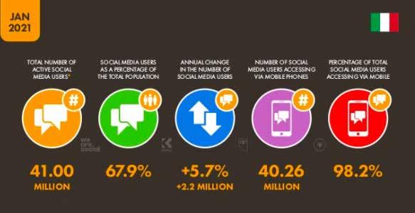 La pandemia da Covid 19 ha avuto un impatto su tutti gli aspetti della nostra vita, spingendoci a utilizzare nuove tecnologie e nuovi comportamenti. Nel corso del 2020 sono oltre un milione le persone che si sono connesse a Internet per la prima volta, un incremento che ha portato al superamento della soglia dei 50 milioni di utenti. Ancora più importante l’aumento sul fronte social: oltre due milioni di “beginner”, un aumento che porta a raggiungere quota 41 milioni.