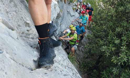 TEST IN AMBIENTE – Dopo la termoformazione, durata davvero una ventina di minuti, il team Tecnica capitanato dalla Guida Alpina Piergiorgio Vidi, ci ha accompagnati a testare il prodotto sulla semplice ma sempre bella via Ferrata che si sviluppa sulla scenografica parete Colodri ad Arco di Trento. Oltre alla calzata davvero impeccabile, abbiamo potuto apprezzare anche la suola, in Vibram Megagrip (valida anche nei passi di aderenza su roccia) e caratterizzata da tasselli extra large, la cui forma rovesciata aumenta il contatto della gomma con il terreno. Molto comodo anche il sistema di allaciatura, che permette una regolazione millimetrica e precisa e che non si allenta durante la camminata.