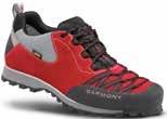 esclusivo processo di laminazione. Tale processo consente di ridurre peso e volume, mantenendo al contempo fit perfetto, permeabilità all’aria e protezione totale dai detriti. Il tallone si abbassa e trasforma Arakys in una comoda pantofola, mentre la chiusura a mano con gancio è veloce ed efficiente. Il sottopiede in pelle permette l’utilizzo anche senza calzini. La suola Vibram, stabile e flessibile, è il frutto di un lavoro collaborativo fra l’azienda italiano e il marchio canadese e dispone di mescola Megagrip.