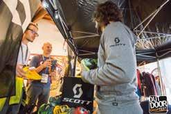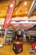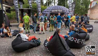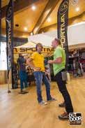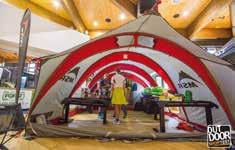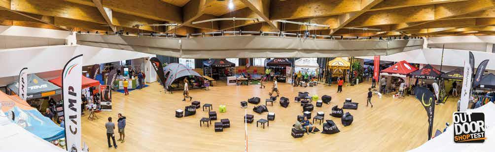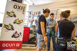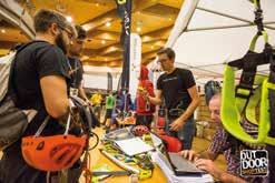 delle lampade frontali Petzl si contende con Buff e La Sportiva, entrambe ben rappresentate nel cuore dell’expo, la superstar americana Anton Krupicka. Un runner, Anton, che con fior fior di risultati agonistici e l’inconfondibile immagine di uomo barbuto d’altri tempi, si è imposto alla grande sulle tante pagine patinate dei media di tutto il mondo. Una piscinetta per bambini attira l’attenzione sull’impermeabilità che si può dare ai prodotti nati per l’outdoor. Siamo di fronte al grosso stand OutDry in cui tra l’altro la resistenza all’acqua viene anche dimostrata lasciando uno dei nuovissimi zaini Ferrino, trattato appunto con Out Dry, al getto continuo di una piccola fontanella. Tra i mille colori che arricchiscono il villaggio di casupole in legno, interessanti soluzioni per l’idratazione in corsa vengono mostrate dall’azienda americana Nathan, mentre poco distante la francese Ulti Mum propone gel energetici completamente estratti dalla frutta disidratata. Tanti gusti, con e senza aggiunta di zucchero di canna,