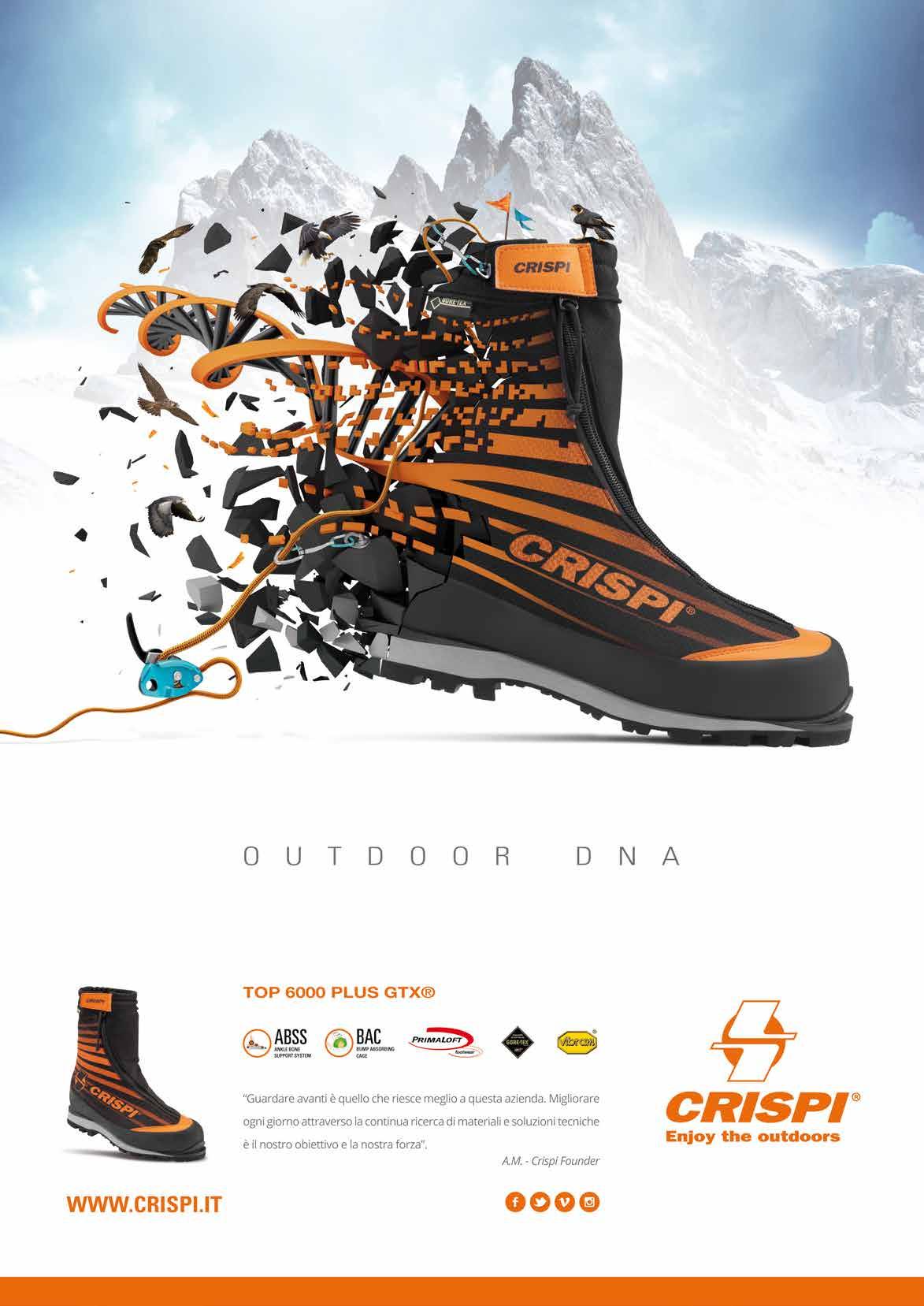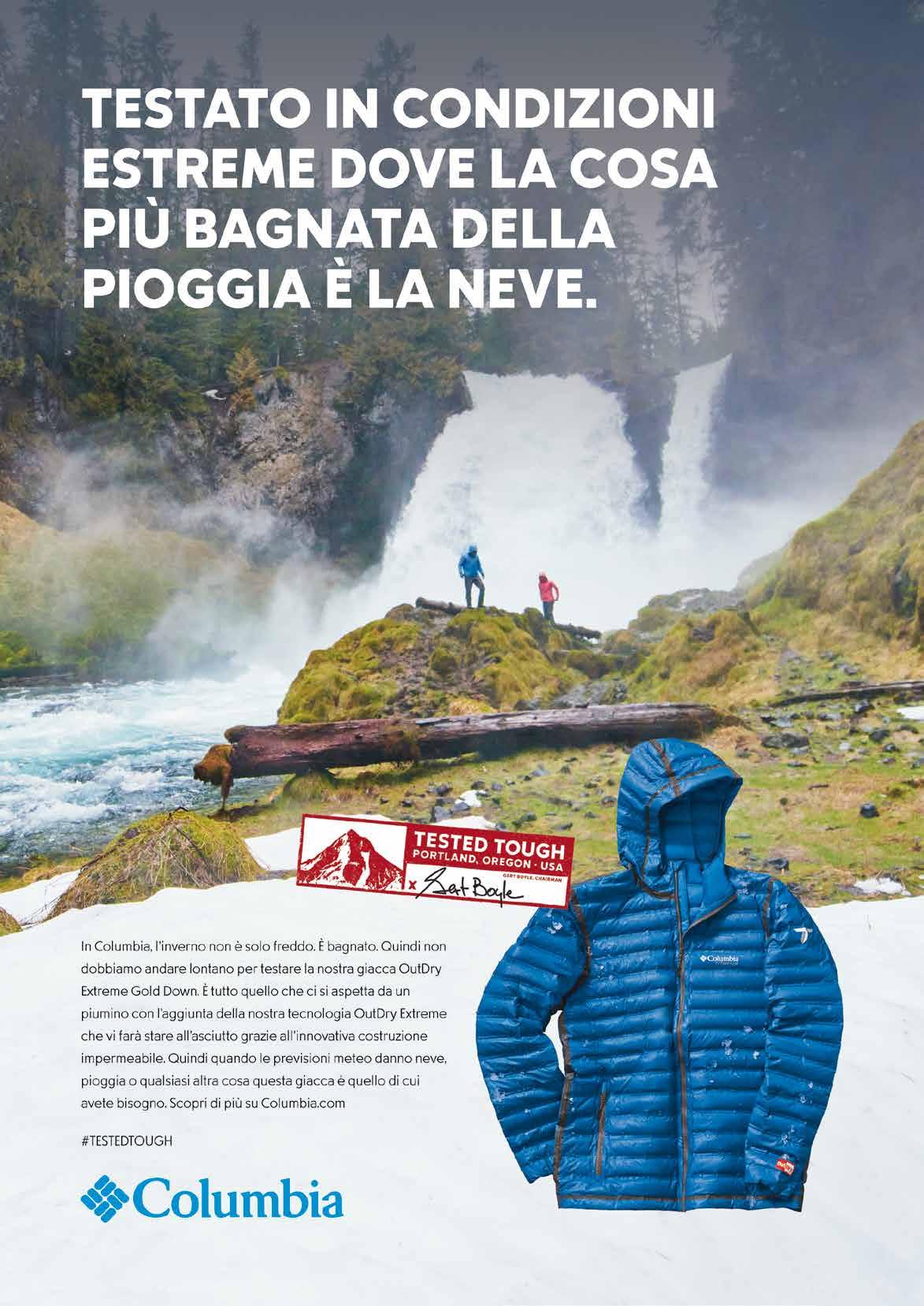 Redazione Italia: Corso della Resistenza, 23 - 20821 Meda (MB) Tel. 0362.600463 Fax 0362.600616 Email: redazione@outdoormag.it Website: www.outdoormag.it Stampa: Ingraph - Seregno (MB) Redazione USA: DNF Media, Inc 1956 Bohannon Drive Santa Clara, CA 95050 Tel: 001.408.261.8809 redazione@outdoorusa.net - www.outdoorusa.net Anno 9 - N. 10 / 2016 Periodico mensile - Registrazione al Trib. di Milano n.186 del 20 marzo 2007. Poste Italiane SpA - Spedizione in abbonamento postale D.L. 353/2003conv. in L. 46/2004 Art.1 Comma 1 - LO/MI - Una copia 1.00 euro. L’editore garantisce la massima riservatezza dei dati in suo possesso. Tali dati saranno utilizzati