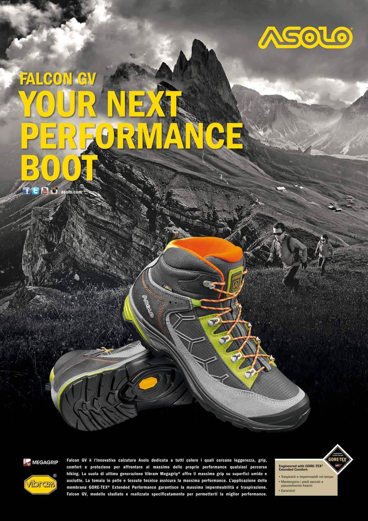 Tra le Seven Summits del pianeta, l’Elbrus ha ispirato imprese e leggende. Punto più alto nella catena del Caucaso e della Russia, il monte di origine vulcanica è descritto nella mitologia come il luogo in cui era stato incatenato Prometeo. Proprio dalla storica cima caucasica prende il nome la nuova calzatura per l’alpinismo firmata Asolo, un modello performante, preciso e dal peso contenuto, ideato per le attività di arrampicata tecnica su roccia e misto. Risultato della ricerca condotta con tester professionisti, lo scarpone è realizzato con i migliori materiali, a partire dalla tomaia in tessuto Schoeller Soft Shell e pelle idrorepellente fino alla fodera in Gore-Tex impermeabile e traspirante. La nuova suola progettata in collaborazione con Vibram è dotata dell’esclusiva tecnologia Dual Integrated System che assorbe l’impatto, aiuta in trazione e trattiene in frenata su qualsiasi tipo di terreno. Inoltre, il design della calzatura è completato da un puntalino anteriore protettivo. Elbrus GV è predisposto per l’aggancio del rampone semi-automatico ed è disponibile in due versioni: man, in colore blu aster/argento e woman, in colore lime/mimosa.