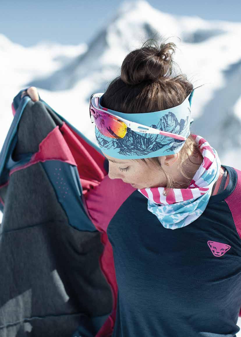 SULLA NEVE. DISPONIBILE IN DUE TAGLIE E IN CINQUE COLORI, SI ADATTA A OGNI FORMA DEL VISO