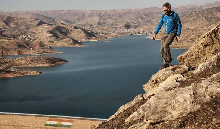 che lo portano alla scoperta di un territorio decisamente diverso da quello alpino in cui è cresciuto. Il Flag to flag (da bandiera a bandiera) è un trekking di 2-3 ore che da una bandiera, rigorosamente kurda, dipinta enorme su una roccia, porta a un’altra simile. Un percorso diventato un classico sia per i camminatori locali che per gli stranieri operanti in zona e alla ricerca di un po’ di benessere post stress lavorativo. Un tracciato non segnalato ma facile da intuire, che inizia ben prima della bandiera “di partenza” che, molto visibile, capeggia sulle alture della città e che passa sulla cresta di fronte alla diga di Duhok dove, giusto per confermare il grande spirito indipendentista di questo popolo, capeggia un’altra grosso vessillo tricolore con il sole in mezzo.