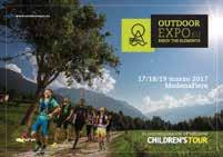 raccontati attraverso un programma di incontri, dibattiti, workshop, demo, esibizioni per il pubblico, competizioni agonistiche e momenti ludici. Last but not least una collaborazione destinata ad essere un successo. Il padiglione B di ModenaFiere, in contemporanea ad Outdoor Expo, ospiterà infatti la XIV edizione del Children’s Tour: l’unico salone in Italia dedicato alle vacanze delle famiglie con bambini, visitato ogni anno da oltre 30.000 persone. Vi daremo maggiori informazioni sull’evento attraverso un articolo sul prossimo numero del magazine, intanto per rimanere sempre aggiornati sulle novità di Outdoor Expo consultate il sito internet www.outoorexpo.eu o la fanpage presente su Facebook.