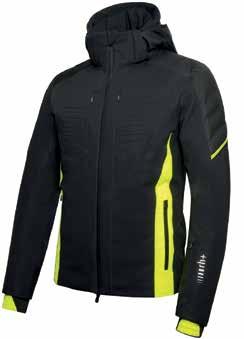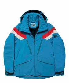Una giacca da sci altamente performante che presenta un tessuto a 15.000 colonne d’acqua, con cuciture termonastrate per non permettere alle gocce d’acqua di filtrare, e ghetta antineve per isolare completamente il corpo. Il cappuccio è staccabile per adattarsi a ogni tipo di clima. L’imbottitura di due pesi differenti per le maniche e per il corpo è stata scelta dopo studi sulla termoregolazione del corpo durante l’attività sciistica. Qualora il meteo volgesse al meglio, le aperture sottomanica fanno uscire il calore in eccesso. Per migliorare il comfort, il tessuto è elastico in tutte le direzioni, garantendo grande libertà di movimento. Le tasche anteriori sono protette da una zip impermeabile per tenere asciutto il contenuto, mentre le tasche inferiori sono coperte da una patellina che evita l’ingresso della neve e sono rivestite di un caldo materiale per scaldare le mani.