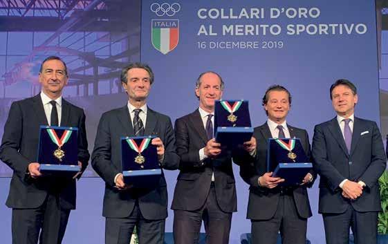 no-Cortina 2026 è stata il capolavoro dello sport italiano’. Lo dedico e lo condivido con la mia Comunità di Cortina d’Ampezzo”. Orgoglioso il discorso di apertura di Malagò, che ha ricordato i successi sportivi del 2019, sottolineando la valenza del successo di Milano Cortina. “Oggi è giorno di festa dello sport italiano, unito in un’unica celebrazione fra olimpici e paralimpici. Io e Luca Pancalli siamo due facce della stessa medaglia e quando c’è da fare squadra per difendere il prestigio del Paese siamo uniti qui, senza distinzione. Grazie al Presidente del Consiglio Conte per la sua presenza: proprio la sua fiducia accordata al CONI e il suo intervento in quei giorni sono stati decisivi nell’assegnazione dei Giochi Invernali 2026 a Milano-Cortina, così come quelli dei presidenti di Lombardia e Veneto, Attilio Fontana e Luca Zaia, e dei sindaci di Milano e Cortina, Giuseppe Sala e Gianpietro Ghedina, insigniti anch’essi oggi del collare d’oro. Aver ottenuto le Olimpiadi invernali del 2026 con Milano-Cortina è un capolavoro nella storia dello sport italiano”.