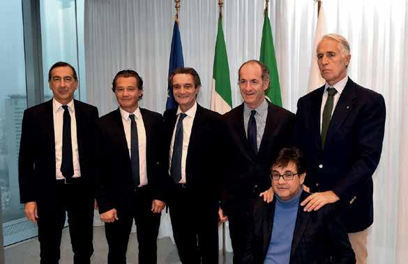 Da sinistra: Beppe Sala, Attilio Fontana, Luca Zaia, Gianpietro Ghedina, il premier Giuseppe Conte