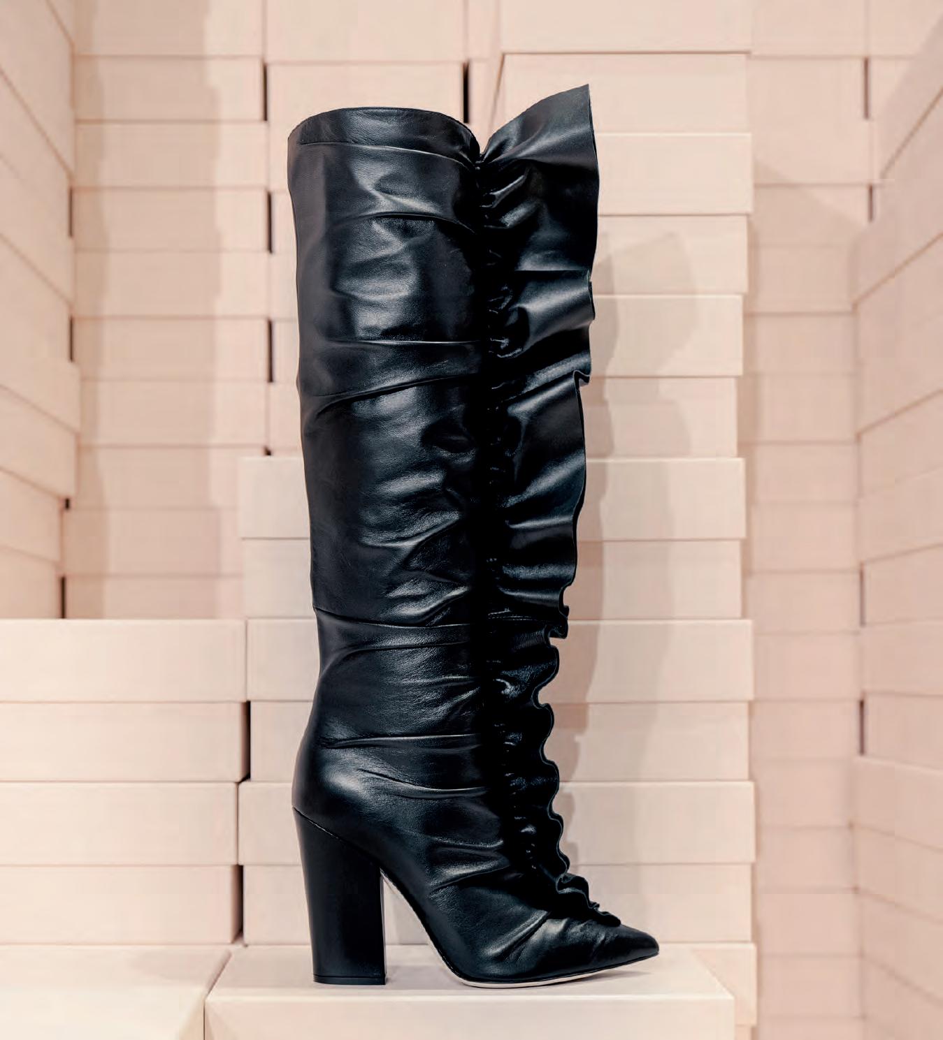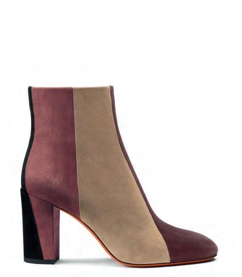Santoni rende omaggio a una donna eclettica, libera e contemporanea, grazie all’uso del colore e di combinazioni inedite di materiali. La fibbia, elemento iconico del brand, viene enfatizzata e triplicata su pantofole, stivaletti e stivali al ginocchio, mentre il colore diventa un motivo architettonico negli stivaletti “color block” dal sapore vagamente ’70.
