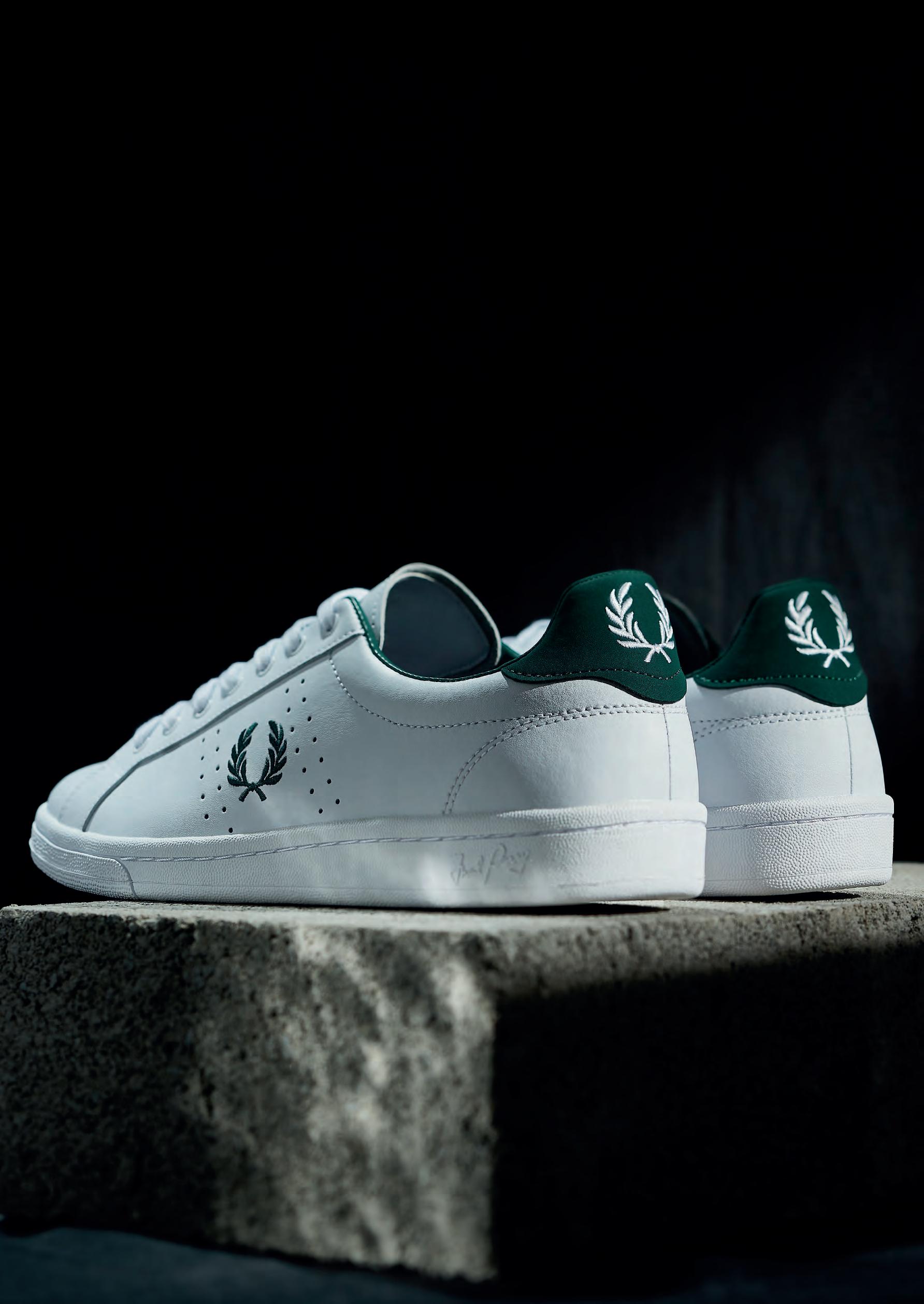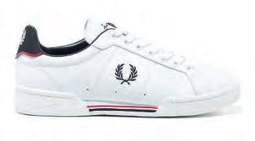 La corona d’alloro di Fred Perry non è però soltanto protagonista con l’abbigliamento, ma da diversi anni anche con una linea di sneakers premium che trae ispirazione dai modelli della tradizione court. Prodotta con una tomaia in pelle e mesh bianchi, la Lawn riprende le linee dei modelli da tennis Anni ’70, così come la B721 che utilizza però una tomaia completamente in pelle su cui spicca il logo Fred Perry racchiuso in uno scudo. Per la B722 è stato scelto un look più moderno, sempre tomaia in pelle bianca ma suola con rinforzi su punta e tallone ispirata ai modelli tennis e training Anni ’80. La Deuce, invece, riprende colori ed estetica vicini a quelli della cultura terrace resa celebre in tutto il mondo dai tifosi inglesi.