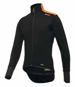 La giacca ideale per il ciclista che vuole affrontare le con dizioni estreme. Per coloro che non vogliono mai ab bandonare la bici, nemmeno quando la testa consi glierebbe di restare sul divano a gustare una tisana calda. Santini Cycling Wear propone loro un’alleata per i periodi più freddi, Vega ha superato la prova della strada in occazione della Milano - Sanremo 2018, indossata dal team Trek-Segafredo per pro teggersi dalla pioggia che ha colto il peloton durante la lunga ed estenuante “monumento” di inizio stagione. Vega Extreme è in collaborazione con Polartec e realizzata con Polartec Windbloc per la protezione all’aria e alla pioggia, garantendo massima elasticità e traspirabilità, per mantenere il bilanciamento termico del corpo durante l’attività. In più, Santini ha utilizzato anche Polartec Alpha, per l’interno del collo, per mantenere al caldo e asciutta questa delicata area. Le maniche sono tagliate al vivo e foderate in tessuto fleece con uno strato esterno sul polso in PU, impermeabile e allungata sul retro per una maggiore protezione. La visibilità su strada, anche in caso di pioggia o nebbia, è garantita dalle due strisce elastiche arancioni sulle spalle che incor porano particolari rifrangenti e dalla scritta “Santini” sul re tro della giacca. Il retro presenta inoltre una tasca waterproof chiusa con zip per riporre all’asciutto di valore.