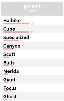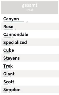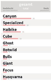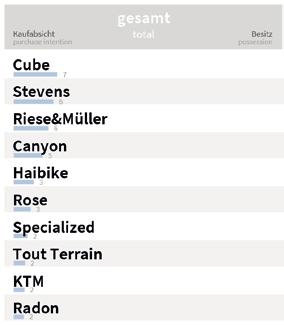 Il lettore dà il polso del mercato La ricerca si basa su questionari a domande aperte e chiuse, a cui quest’anno hanno risposto oltre 42.470 lettori. Allettati da premi messi in palio dalla casa editrice, gli intervistati forniscono informazioni sulle intenzioni di acquisto, i marchi preferiti, i prodotti acquistati, le preferenze per il futuro, fornendo uno spaccato più che concreto del mercato e dei suoi trend. Lo studio, condotto dall’istituto di ricerche di mercato Market Research di Neuhausen (Stoccarda), è considerato un barometro significativo e di tendenza dell’industria della bi-