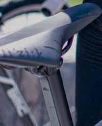 • uno strato supplementare di Gel e l'inserimento di due cuscinetti shock absorber localizzati in corrispondenza dell’appoggio delle ossa ischiatiche.