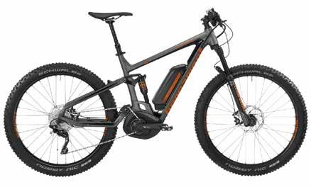 la bicicletta agile. La protezione in plastica resistente del motore studiata da Bergamont protegge la power unit Bosch da rocce e radici e il design di tutti i componenti. Il passaggio dei cavi interni garantisce un look pulito. L’E-Contrail plus presenta il nuovo standard di mozzo Boost, che non solo rende il telaio compatibile con ruote da 29” e 27.5”+, ma aumenta anche la rigidità della ruota incrementando la precisione di guida. Lo standard Plus conferisce maneggevolezza e una più veloce scelta di traiettoria per i rider più esperti, garantendo allo stesso tempo più sicurezza e affidabilità ai rider meno disinvolti. Il carro posteriore del telaio, con puleggia integrata, funge da tendi catena, un sistema che garantisce massima affidabilità anche nelle discese più tecniche.