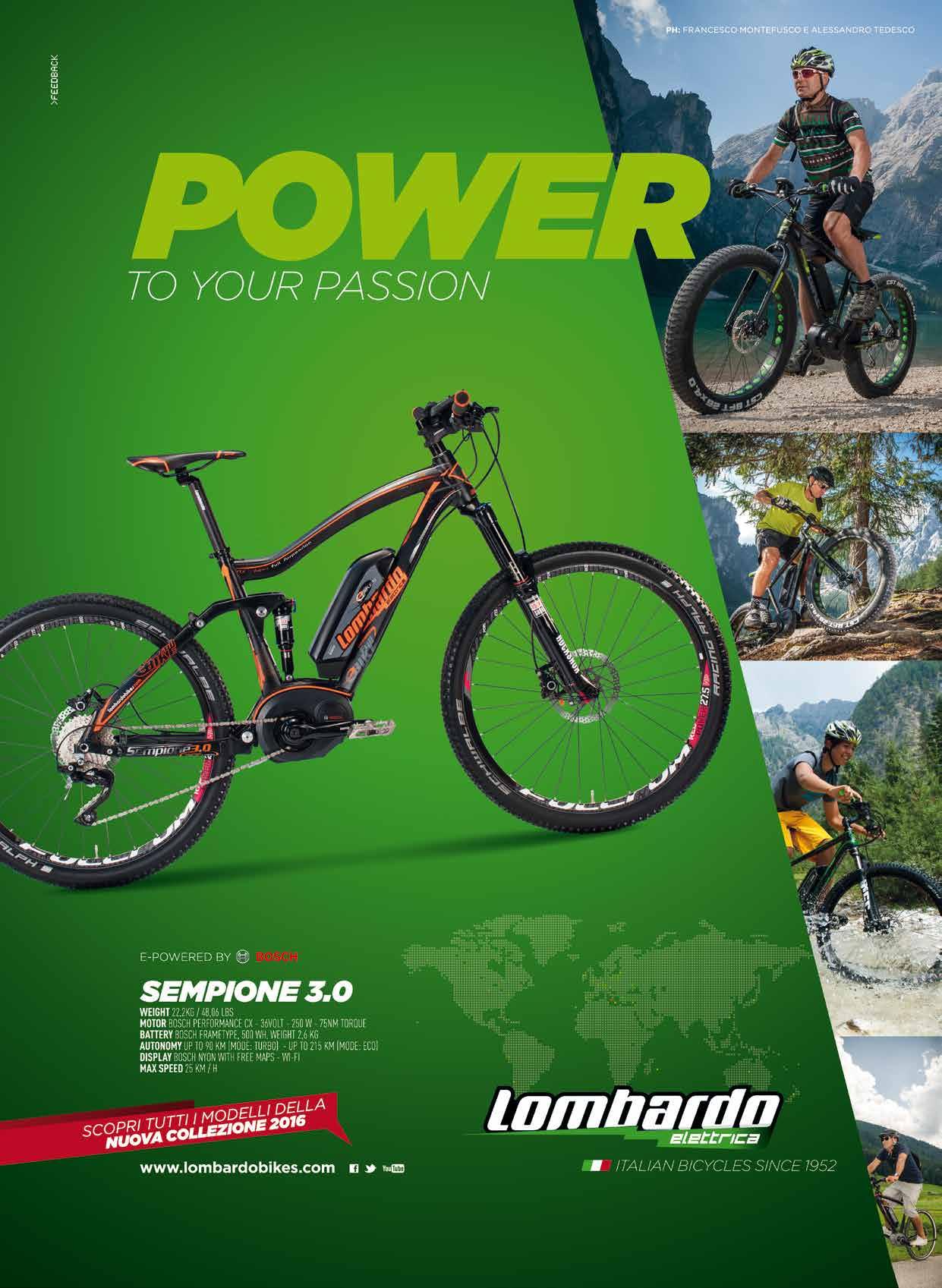 e incertezze. Finalmente vengono percepite dall’utente non più come un mezzo furbo, ma come un prodotto “in”, adatto a numerosi stili di vita e di utilizzo della bici. Il prezzo medio di una eBike nel 2015 è aumentato dell’8% e si assesta intorno ai 3.280 euro, 3.050 per le city bike e 3.890 per le mountain bike, una cifra piuttosto alta, che denota l’attenzione dell’utente verso un acquisto di qualità e giustifica gli investimenti di Bosch per la creazione di un prodotto al top del mercato. I modelli più richiesti sono quelli di carattere più prettamente sportivo, la prova ne è il successo del motore Bosch Performance CX installato su un quarto delle eBike motorizzate dalla casa di Stoccarda. Mentre le batterie ora, invertendo la tendenza del passato, sono per un 60% al tubo obliquo e un 40% al portapacchi e sono quasi tutte al litio, rimpiazzando quelle vecchie al piombo. In controtendenza con i maggiori mercati di consumo, la stragrande maggioranza