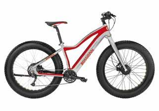 Dotata di 2 ruote motrici, con doppio mo tore al mozzo, si presenta come una fat rivo luzionaria. Permette un grip e un controllo inarrivabili su ogni superficie (fango, neve, sabbia), mentre gli pneumatici oversize as sicurano grandi capacità di assorbimento e divertimento in discesa.
