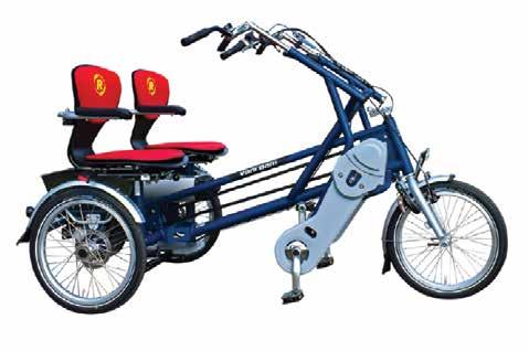 Tricicletta a ruota singola anteriore sterzante, su cui accompagnatore e utente sono seduti uno accanto all'altro.