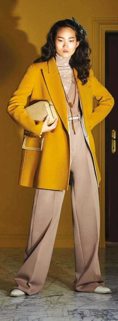 Circolo 1901 continua lo sviluppo di una capsule “luxury” in aggiunta alla collezione più iconica del marchio. La griffe abbina materiali preziosi come la lana ultra fine e la felpa in filo di Scozia a tocchi di lurex oro allʼinterno delle strutture come il nido dʼape o il lino gessato per donare ad un classico un tocco di prezioso. In collezione si aggiungono modellistiche nuove come il tailleur smoking più elegante in viscosa con contrasti in raso.