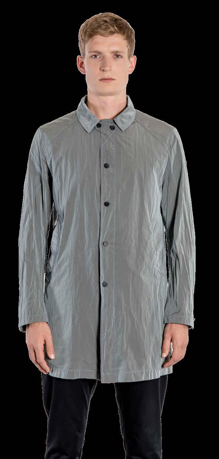 Linee over per la camicia proposta nella primavera-estate di RRD. Con un tessuto esteticamente simile al cotone oxford, viene reinterpretata nell’estetica. No stiro, il tessuto è anche anti-piega. Poliammide all’86% ed Elastomero al 14%.