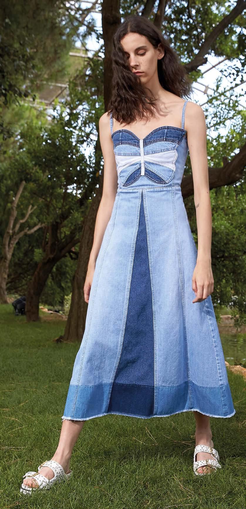 Un’indagine pratica sulla mitologia americana dei seventies diventa la collezione femminile di Jacob Cohën per la primavera-estate 2020. E proprio i lavaggi sono al centro del guardaroba urbano: il denim, infatti, si arricchisce di dettagli della stessa texture, ma sottoposti a trattamenti diversi. Se le camicie hanno i taschini a contrasto, i vestiti si fanno notare per gli inserti sui lati. Le silhouette, invece, riflettono sui seventies, riprendendo da lì volumi flare per i pantaloni palazzo a vita alta, così come i maxi dress con cinturino in vita. Le camicie con lavaggi dégradé si abbinano a pantaloni a gamba dritta dagli orli dall’appeal used, sfilacciati, mentre il blazer doppiopetto in denim dalle proporzioni maschili è diretto erede delle giacche usate negli Anni ‘70 da Marianne Faithfull, esempio di femminilità controcorrente, che già allora pescava dall’armadio di lui, mischiando sapientemente il suo dna londinese con uno stile gipsy, diretto erede di Woodstock.
