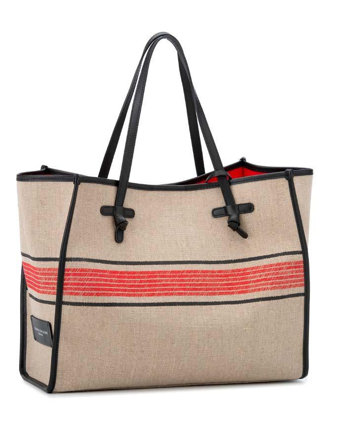 Per la prossima stagione calda, Gianni Chiarini rivisita la sua shopper Marcella In lino con strisce decorative in rilievo e dettagli in pelle ispirata ai tessuti e ai ricami tipici dei tappeti marocchini.