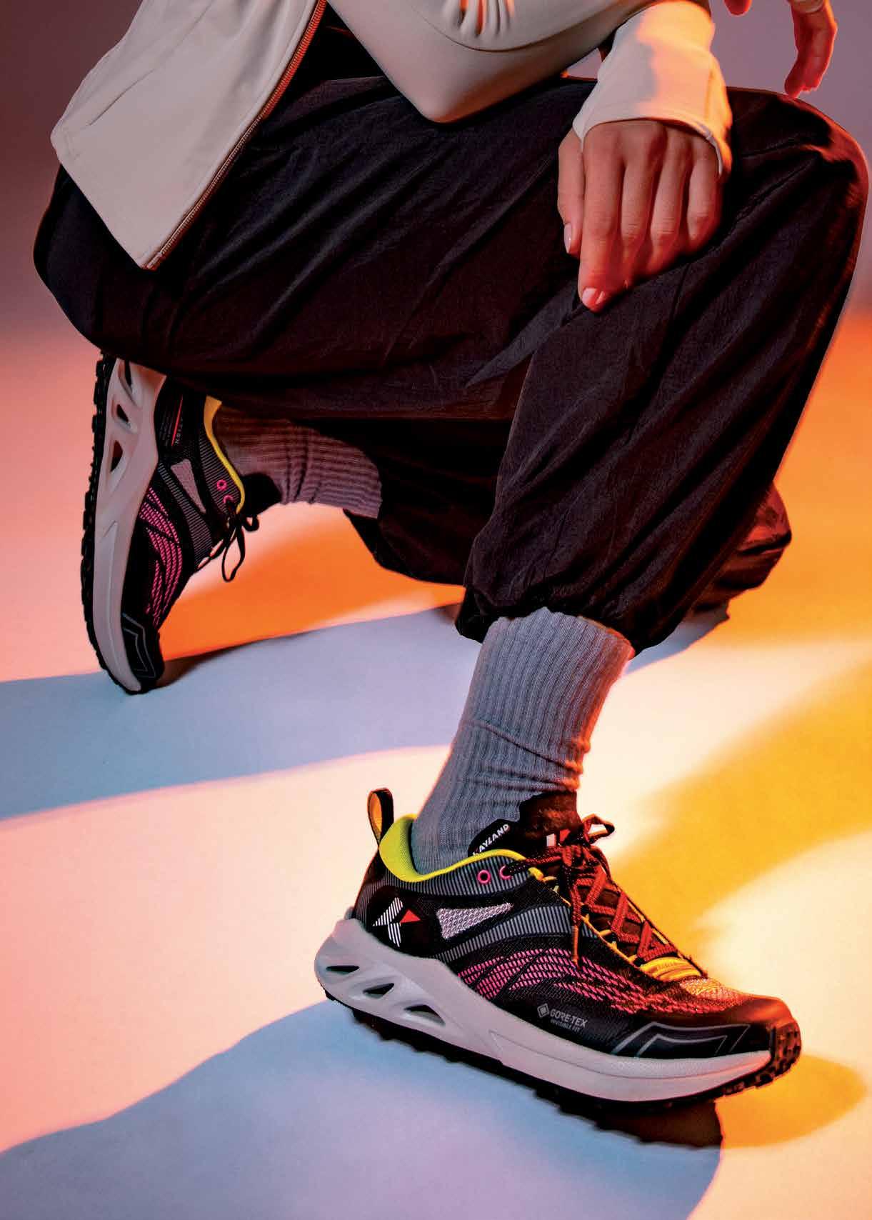 Featuring Kinetic Fusion Foam midsole for responsive cushioning and a versatile Traction outsole for stable footing and improved grip, this shoe is designed to be fast, fun, and agile, responding well to every trail running challenge. Rocker technology reduces heel impact and increases efficiency, while Fusion Kinetic foam combines EVA and Pebax to ensure the perfect balance between lightness, responsiveness, and durability. The model is also available in Gore-Tex Invisible Fit to keep the feet dry throughout their run. The drop is 8 mm and the weight is 250 g in the men's version and 220 g in the women's version.