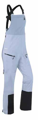 Questa salopette è comfort e protezione: grazie alla membrana Ultrashell sviluppata internamente e caratterizzata da una struttura microporosa, questo capo offre un’impermeabilità di 20.000 mm di colonna d’acqua e una traspirabilità di 80.000 MVP, garantendo un riparo totale da neve e pioggia. Le ghette interne impediscono alla neve di entrare dalle caviglie, mentre i bottoni a pressione sul fondo gamba consentono di regolarne l’ampiezza. L’integrazione del sistema RECCO aggiunge un ulteriore livello di sicurezza in caso di emergenza. Tra i punti di forza di questo pantalone c’è il sistema a doppio bottone automatico che consente di aprire la parte posteriore senza dover sfilare completamente la salopette: una soluzione intelligente, discreta e pratica quando necessario. L’inserto posteriore elasticizzato inoltre avvolge la vita e mantiene la perfetta vestibilità anche durante i movimenti più dinamici. A completare il tutto, bretelle regolabili e rimovibili, essenziali per garantire la massima libertà di movimento. Infine, la resistenza: uno degli obiettivi di Cimalp è creare capi che accompagnino gli appassionati stagione dopo stagione. Non a caso, sono stati scelti materiali tecnici di alta qualità e sono stati aggiunti rinforzi contro usura e abrasioni su polpaccio e caviglia. Il risultato è un capo solido e affidabile, pensato per le praticanti più esigenti che cercano performance e protezione senza compromessi.