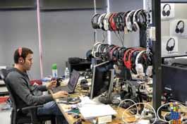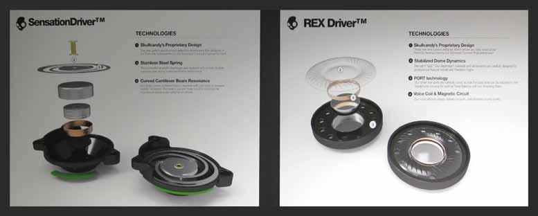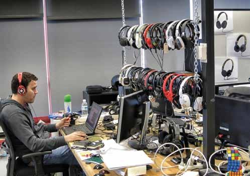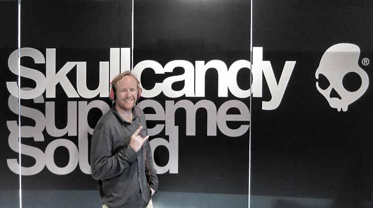 mi trasmette tutto il suo immutato entusiasmo per lo snowboard e per un progetto nato quasi per caso e ora grande realtà in continua evoluzione. Poi Rick mi affida a Tom Bishop, 35 anni, vicepresidente dello sviluppo del prodotto e della produzione, un giovane ingegnere e snowboarder (come quasi tutti quelli che lavorano in questa ditta), con un passato lavorativo nella Burton factory in Vermont e alcuni anni direttamente operativo sul campo di produzione in Cina. Tom mi concede il privilegio di una super visita guidata all’interno dell’azienda. Nella sala dell’acustica, prima tappa del nostro giro, mi mostra un video con particolari effetti sonori ottenibili attualmente solo in questa tipologia evoluta di sale cinematografiche. Qui mi spiega come il loro fine sia quello di portare la pulizia del suono con relativi effetti speciali che ho appena ascoltato, nelle cuffiette portatili. L’ennesimo progetto ambizioso a cui si stanno avvicinando step by step. “Per realizzare questo, e altri progetti legati al suono”, mi spiega Tom, “nel 2010 si è deciso di convogliare tutte le forze interessate a questo settore e quindi farle interagire gomito a gomito, nello stesso stabile, ovvero nell’head quarter di Park City. Per provare a essere i migliori, bisogna soddisfare tutti i 5 requisiti richiesti, magari anche inconsapevolmente, dai rivenditori e dall’utente finale, che in ordine di importanza sono: 1) il comfort delle cuffie e degli auricolari, 2) l’acustica, 3) l’affidabilità dell’oggetto, 4) lo styling e 5) il nome”. Siamo sempre nella sala dell’audio e alle nostre spalle si trova un manichino con vari microfoni collegati a un computer: lo usano per vari test sulla recettività dei microfoni. “La Skullcandy attualmente propone una trentina di oggetti diversi nell’uso (per telefonini, computer, videogame, stereo, dj, professionisti... ecc) e nel prezzo (dai 10 agli oltre 300 euro), e per poter essere affidabili e competitivi in tutte queste svariate opzioni abbiamo deciso di raggruppare i nostri tecnici di elettrica, meccanica e acustica, unitamente ai designer e ai responsabili di ingegneria fattori umani (es. effetto comfort), sotto lo stesso tetto. La collaborazione tecnica istantanea ha avuto il suo effetto immediato e il risultato è stato sorprendente, sia sotto il profilo pratico, tanto che i prodotti Skullcandy sono migliorati esponenzialmente