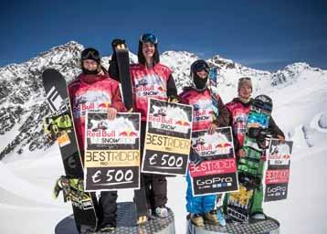 3 a Tappa: vaL s enaLes – La data conclusiva del tour è stata il 14 aprile, quando sulla struttura Jack in the Box le tre formazioni si sono sfidate per l’ultima volta. Su un impianto dell’altezza di 12 metri con quattro linee di riding, big air, spina, rail e wallride, gli atleti hanno potuto mettersi alla prova per dar vita a una sessione emozionante. Al termine della gara, il titolo di vincitore assoluto del Red Bull Innsnowation è andato proprio al park di Val Senales, grazie anche a una prova eccellente da parte dei suoi atleti. Tutti i rider di casa sono andati sul podio: Simon Gruber (snowboard pro), Christof Schenk (freeski pro), Max Vieider (snowboard amateur), Daniel Tschurtschenthaler (freeski amateur). Alla squadra sono stati assegnati un premio in materiali e servizi del valore di 10.000 euro e la possibilità di usufruire del gatto delle nevi offerto da Pisten Bully per la stagione 2013 / 2014.