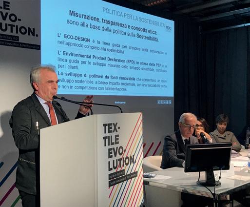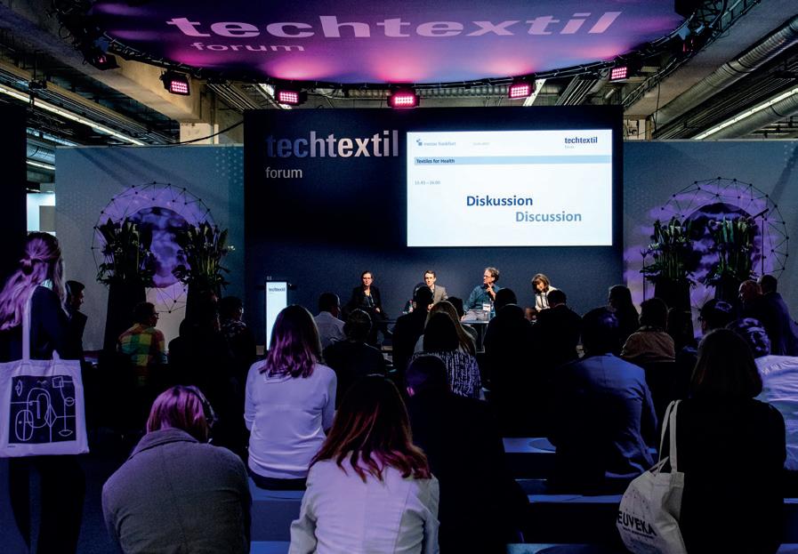 po, dalle linee di produzione alle macchine, sono sempre più basate sul cloud tra progettisti, sviluppatori, produttori e rivenditori, al di là dei confini nazionali. “La digitalizzazione e le reti interconnesse nel settore stanno guadagnando terreno e ora sono arrivate fino al punto vendita”, ha affermato Elgar Straub. “Penso che, in un futuro non troppo distante, le cose andranno sempre più in questa direzione; e, in collaborazione con fornitori di software e produttori di macchine per le diverse fasi del lavoro, includeranno l’intera catena del processo” - ha aggiunto Alexander Behm, product manager di H. Stoll AG & Co. “Towards sustainability” è stato il motto del Techtextil Forum, appuntamento dedicato esclusivamente alle innovazioni tessili sostenibili, un tema assolutamente centrale nell’edizione 2019. Fibre realizzate in poliestere riciclato, tessuti ad alta tecnologia a base biologica,
