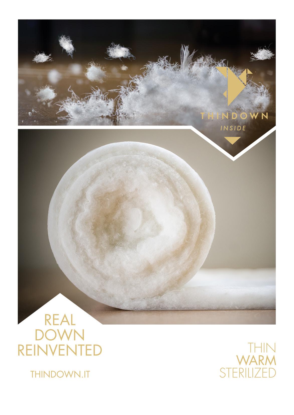 È in Italia che nasce Thindwon e da qui raggiunge tutto il mondo, al servizio di alcuni dei brand più importanti del settore moda, sport e accessori. Dal capospalla, al trench, ai guanti da neve che grazie a questo tipo di isolamento possono contare su performance di altissimo livello. Thindown viene prodotto da Nipi R40, l’unico macchinario al mondo in grado di trasformare le piume in un tessuto fermo che si presta a molteplici ambiti e settori di utilizzo e vanta una grande versatilità di lavorazione,