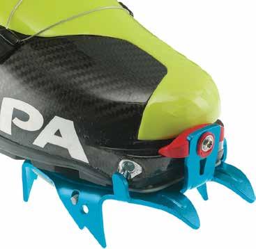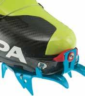 Questo modello, che vi proponiamo nella versione rampone automatico, è disponibile anche nella versione semi-automatica. Entrambi hanno un innovativo sistema di micro-regolazione della taglia senza l’ausilio di attrezzi, estremamente preciso e stabile. Il sistema di collegamento rigido/pieghevole permette di chiudere il rampone su se stesso riducendone l’ingombro per il trasporto, garantendone al contempo la massima affidabilità e stabilità di calzata durante la progressione.