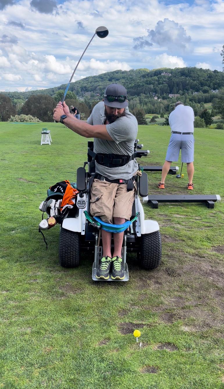À la fin de l'été, nous avons acheté un SoloRider pour ceux qui souhaitent essayer le paragolf Nous tenons à remercier Patrick Charbonneau de l’entreprise Durabac inc pour avoir rendu cette acquisition possible Le SoloRider est entreposé au Golf Château Bromont et sera disponible dès le début de l'été prochain Un formulaire de réservation en ligne sera disponible pour les personnes intéressées par le paragolf, ainsi que pour les bénévoles qui souhaitent être accompagnateurs pour un parcours de 9 ou 18 trous.