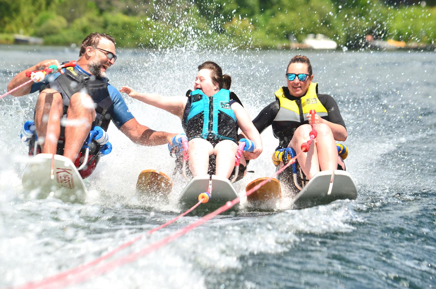 À ce jour, notre programme de ski nautique offre la plus grande montée d'adrénaline de tous nos programmes. Après le ski alpin, c'est le deuxième programme que nous avons introduit et il n'a cessé de croître à un rythme soutenu depuis. Les participants ont l'occasion de pratiquer un sport passionnant, mais aussi socialiser avec les autres à bord en attendant leur départ. Ce programme nécessite au moins sept bénévoles pour un participant et chaque rôle est aussi important que le suivant.