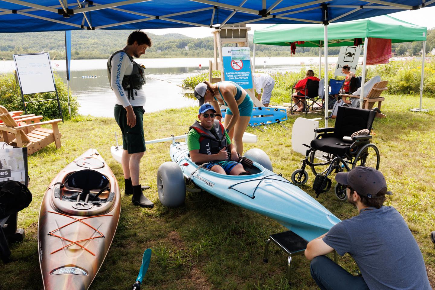 Notre récente acquisition d'équipement spécialisé pour adapter les kayaks a marqué le début d'une nouvelle aventure passionnante et remplie de possibilités pour la FSA. Nos kayaks adaptés sont équipés de stabilisateurs arrières, d'un siège réglable et d'un support de pagaie incliné sur un pivot avec des adaptations pour les poignets et les mains, ce qui permet à des personnes, même gravement handicapées, de faire du kayak de manière autonome. Notre programme de kayak semble se diriger vers de nouveaux sommets. Voir une personne tétraplégique pagayer pendant deux heures sur l'eau, en riant avec ses amis et sa famille, n'a pas de prix. En plus de proposer des activités ponctuelles, des sorties scolaires et des journées découvertes, nous avons offert cette année aux pagayeurs quatre séances d’après-midi sur plusieurs semaines afin qu'ils puissent se perfectionner progressivement en kayak. Au total, 76 moments magiques ont été proposés.