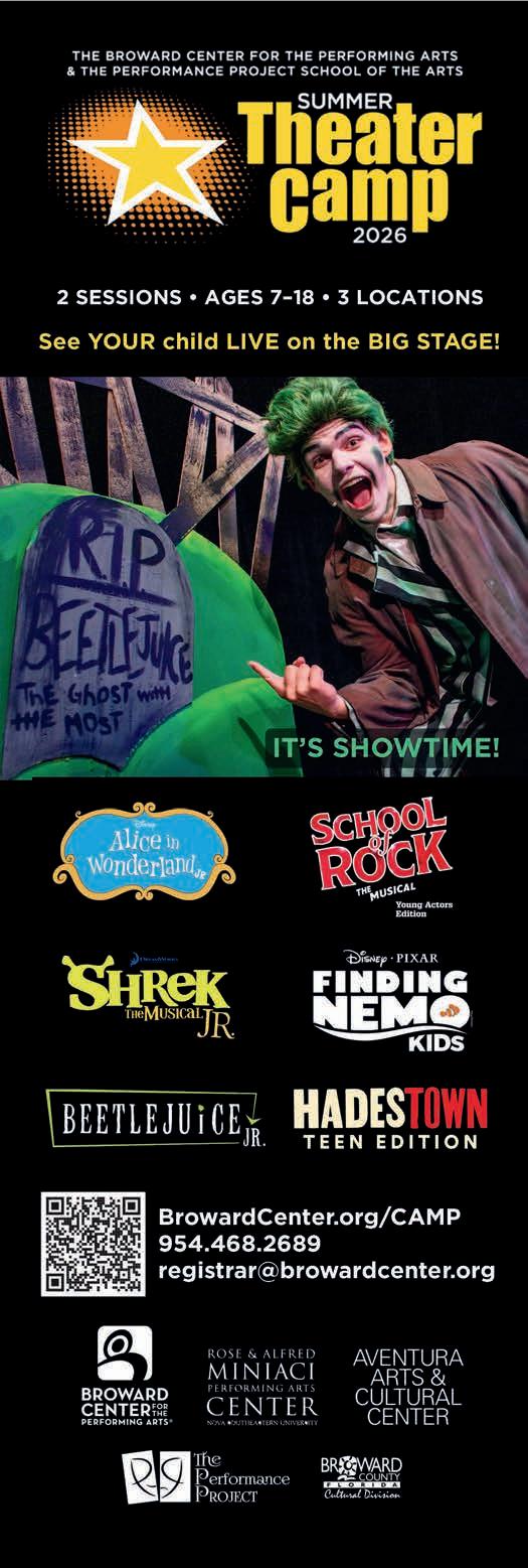 The Broward Center for the Performing Arts and The Performance Project School of the Arts present SUMMER THEATRE CAMP 2026. Two sessions, Three-Age Groups at 2 Locations including: Broward Center, Aventura Arts & Cultural Center and Miniaci Performing Arts Center at NSU. Space is limited, so Act Fast! Enroll today at BrowardCenter.org/CAMP.