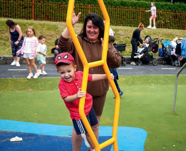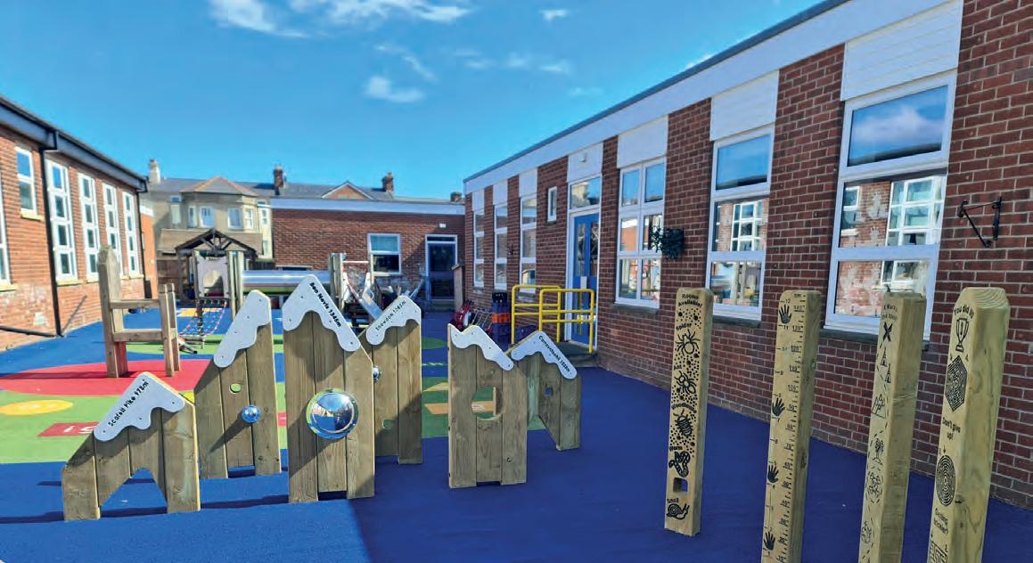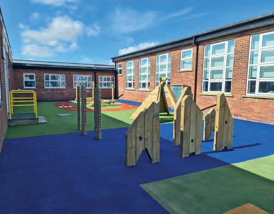 The space now includes climbing and balancing elements to develop coordination and core strength, lowlevel platforms and slides designed for early years confidence-building, interactive play panels incorporating architectural detailing inspired by the site’s heritage and sensory features supporting cognitive and