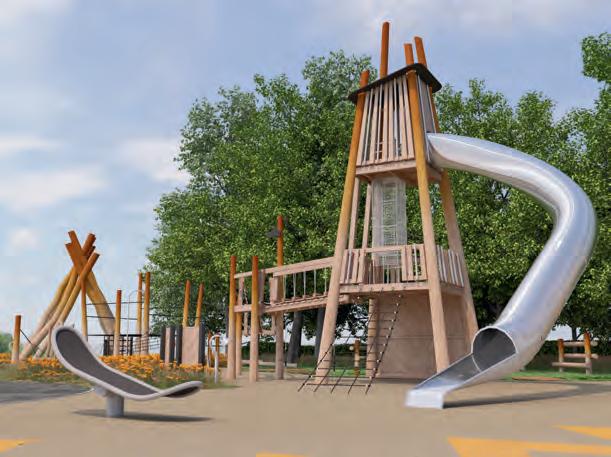 The brief emphasised the need for new junior-focused equipment (to contrast with the existing toddler-facing items). Sutcliffe Play met this requirement with a brandnew unit, Helix, which is the first of its kind to be installed anywhere in the country.