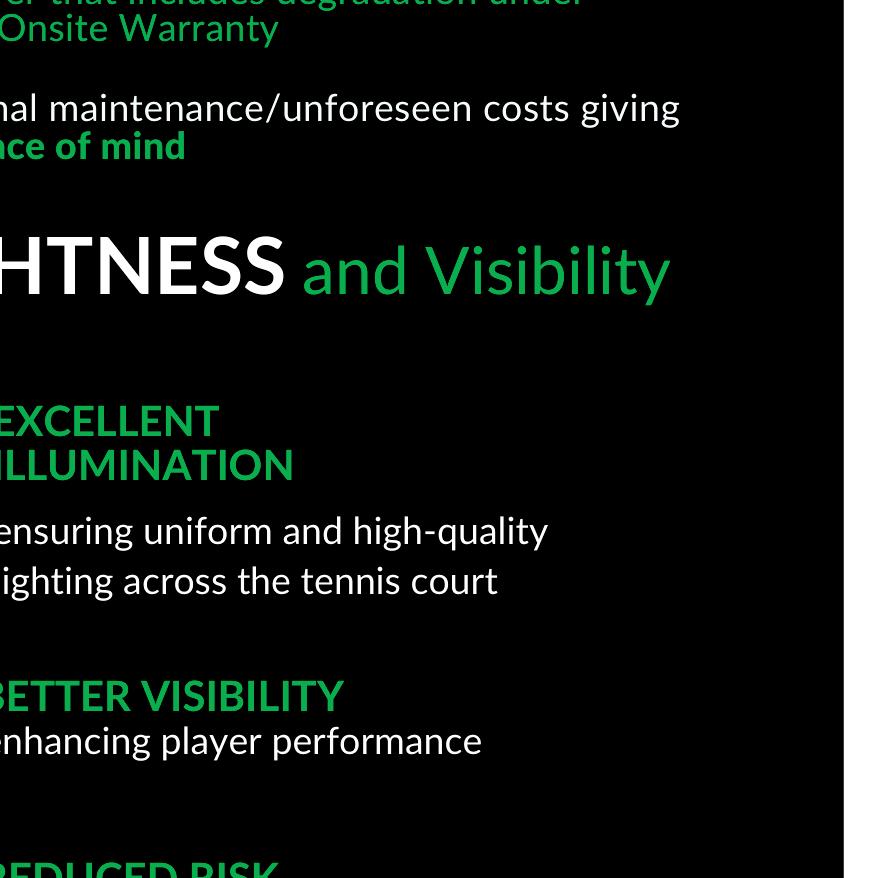 LMXLED provided a solution which exceeds LTA guidelines by replacing each head with its 600w LXFL400 Tennis high mast sports floodlight. In addition to improved lighting for players, the system offers a big saving of 70% on energy consumption, which is crucial amid the rising utility prices.
