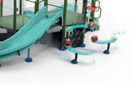 A dedicated toddler zone features sensoryrich, developmentally supportive play with the J2646-M Odyssey, J2615 Little Boat, and inclusive J2406 WOK Spinner. A sensory pathway with seven tactile surfaces connects themed zones, while “play on the way” elements like sound panels and balance boards engage older children.