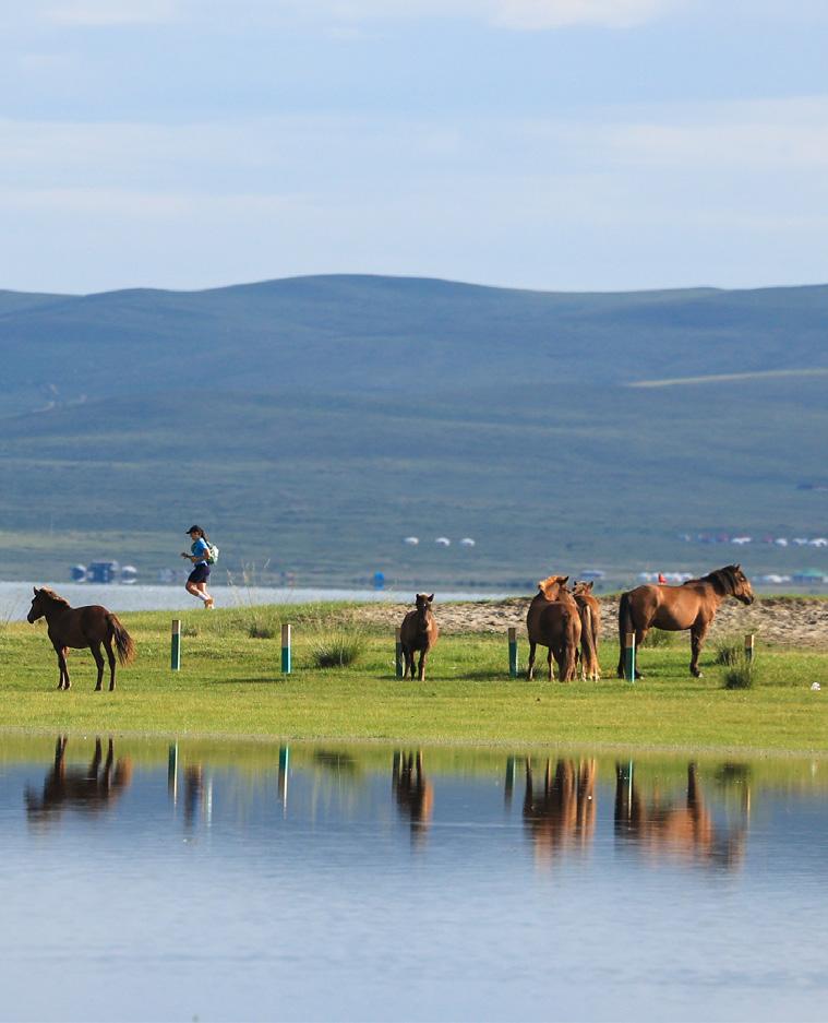 Mongolia Trail Run es una carrera por etapas que te permite correr por el pequeño desierto del Gobi, las estepas mongolas al lado de caballos salvajes y cruzar ríos de agua cristalina. Cada una de las etapas es distinta por su paisaje y su distancia. De las dunas del desierto pasas a correr por altas montañas donde te encuentras ovoos (santuarios chamánicos fabricados con ramas), atraviesas bosques de altos árboles y llanuras inmensas.