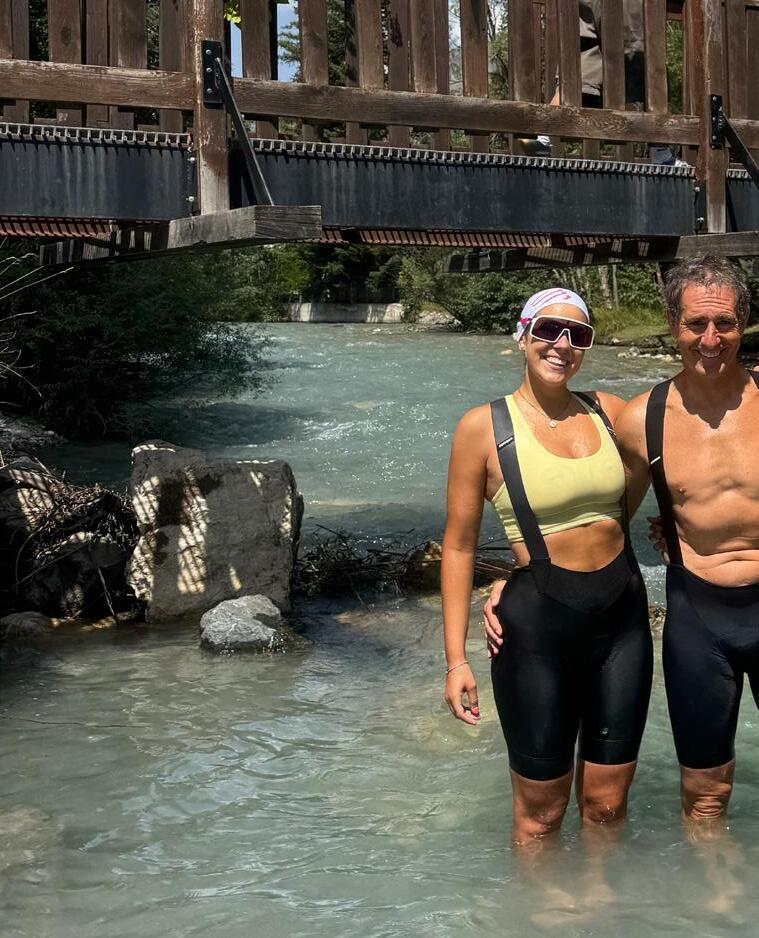 De regreso a Briançon, a unos 10 km, el calor nos obligó a parar en el río para remojarnos. Al final, Àlex, Pau y Laia se capuzaron del todo y se refrescaron como si fueran niños. Una vez